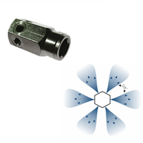 Концевик цанговый предназначен для систем высокого давления до 80 атм. и используется с целью подключения 6-ти форсунок туманообразования с резьбовым соединением 10/24 дюйма и обеспечивает распыл форсунок под углом 30.