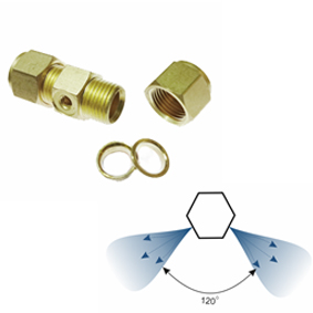 Муфта соединительная под трубку 3/8 дюйма с адаптером под резьбу 10/24" на две форсунки с расположением 90°.
